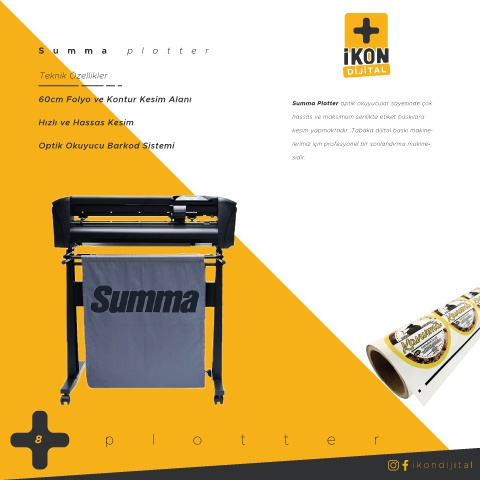 60cm Folyo ve Kontur Kesim Alanı Summa Plotter optik okuyucular sayesinde çok